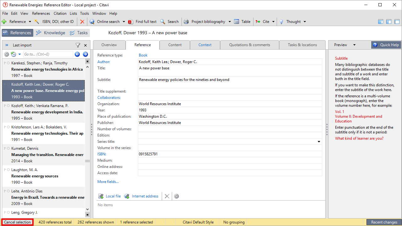 6、导入的引用被应用作为一个选择。现在,您可以只包含搜索结果的选择工作。要再次查看你所有的证明,单击取消选择。