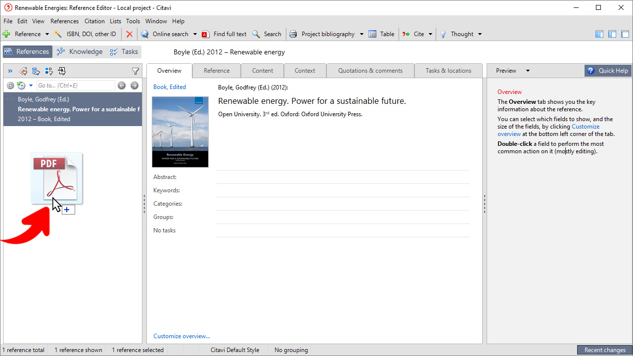 1、笔记功能异常强大相较于EndNote 等简陋且难以发觉的笔记功能,Citavi的笔记笔记功能堪称豪华。在 Citavi 中,笔记或者说知识条目的建立、管理和维护具有与题录信息同等的重要地位。Citavi中的笔记分为摘要、目录、直接引用、间接引用、总结、图片或文件引用、评论、想法和分级等。用户可以根据分门别类、方便快捷地进行记录和检索。大部分类别支持从右侧的 PDF 预览列中快速建立。对 PDF 文件的标注、高亮等操作都可以在 Citavi 窗口中完成。使用 Citavi 可以不再依赖独立的 PDF 阅读器软件。