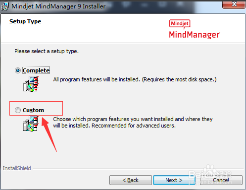 进入到了下一级界面当中,进行勾选上custom 的选项。进行点击next 按钮。