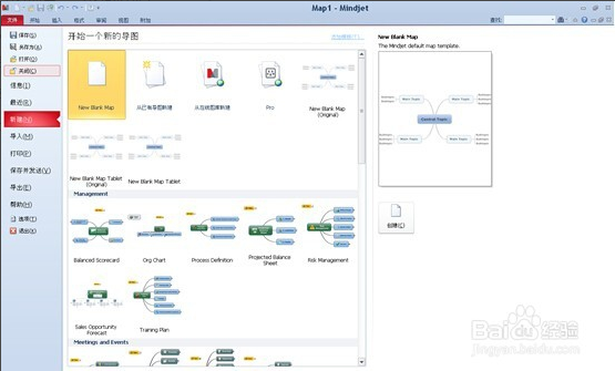 另外,你也可以选择文件->新建选项,新建一个空白导图,或者从现有导图或者预设模板创建一个导图。