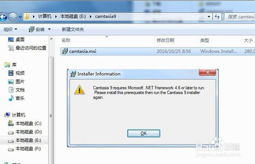 打开Camtasia Studio 9的安装程序,若没有安装NET Framework 4.6.2,则安装程序为提示安装,如下图所示。