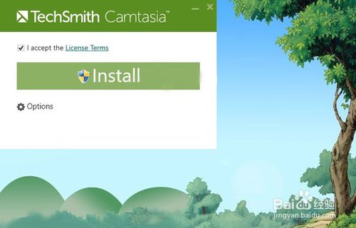 接着打开Camtasia Studio 9的安装程序,在弹出的安装界面上勾选“I accept the License Terms”,鼠标左键单击【Install】,如下图所示。
