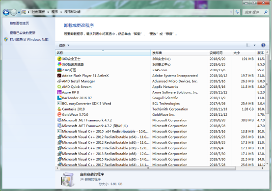点击开始—控制面板–程序—程序和功能,然后选择Camtasia软件,右击卸载,进入到卸载导向,根据相应的提示来进行操作。