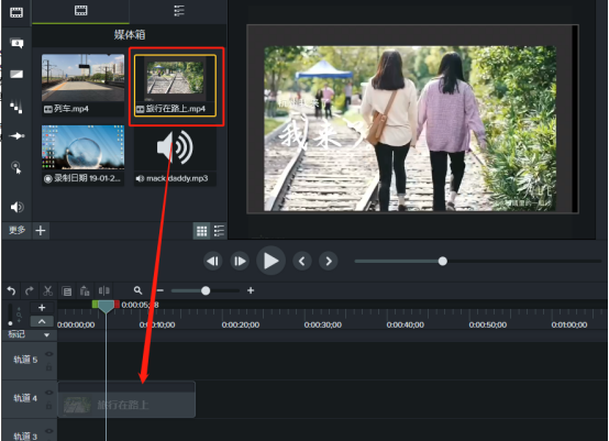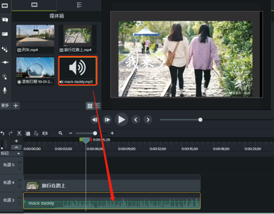 然后将另外添加的音频拖至时间轴将视频和音频的时间统一即可。