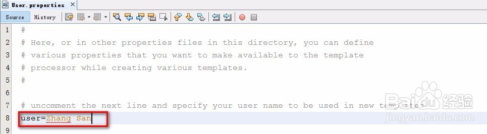配置用户名称:启动netBeans后,点菜单Tools->Templates,弹出Template Manager窗口,点击右边的Settings,将最下面一行前面的#号去掉,并输入自己的名称,如变为:user=Zhang San,保存并关闭User.properties文件