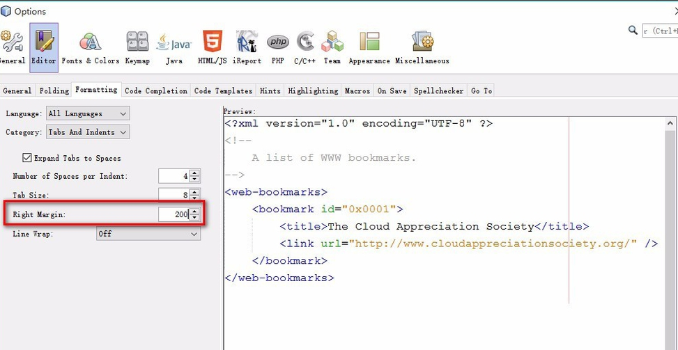 去掉代码编辑界面的红色竖线:启动netBeans后,点菜单Tools->Options->Editor->Formatting,修改Right Margin的值,我一般都设为200。