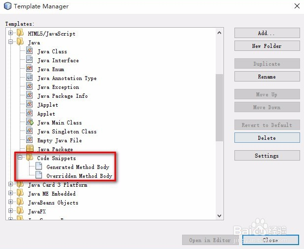 选择Overridden Method Body,点击【Open in Editor】,将“//To change body of generated methods, choose Tools | Templates.”片段删除,共两个。