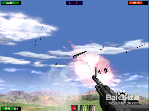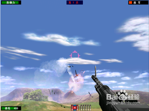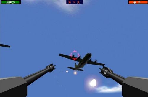 用机枪射击飞机。在游戏中,如果飞弹发射完后,就要用机枪射击飞机了,在飞机飞来的时候,按鼠标左键,连续射击飞机,不一会儿飞机就被打爆炸了。