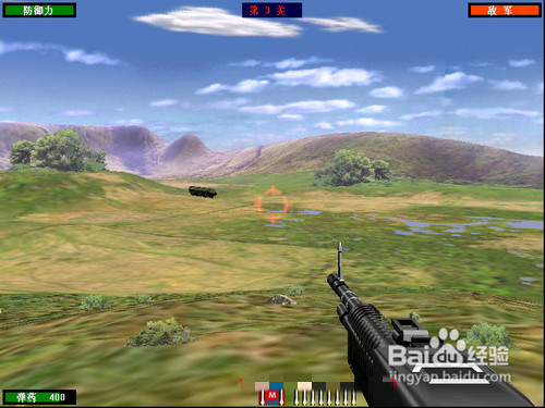 使用飞弹把运兵战车打爆炸。 当自己的大炮没有子弹,而敌军则还具有战车时,就只能操纵飞弹来打运兵战车了。点击M键,把准星移到战车身上,就会把运兵战车给打爆炸了,但是需要瞄的准一点哦。