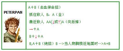 老大彼得,平衡型,最易上手,手持一把长剑,出招速度快,攻击力中等,小技能范围大。基本每个新手都能很快掌握,而且老大的腿技十分了得,能踢倒任何敌人,称为“无敌腿”,必杀技是能量光圈,老大不论单打组队都非常优秀。