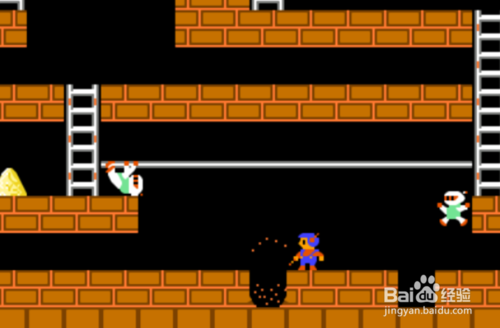 5、在高空中将地挖掉,我们可以从中直接跳过,但是敌人却不行。