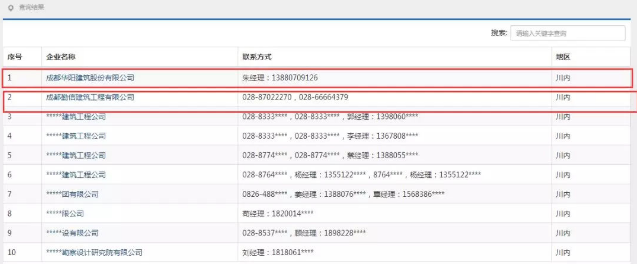 答:在首页搜索一栏,输入企业关键字,如:中铁。则结果筛选出数据库内所有公司名字包含“中铁”的建筑企业。