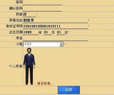 6、在出现的注册页面输入登录的学生信息,选择教师已经创建的小组号(新建的学生必须要加入小组,教师未创建小组则学生无法注册),选择个人形象,点击“注册”;