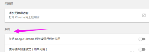 5.浏览器的【高级】界面里,我们在下方就可以找到【系统】,发觉硬件加速模式是关闭着的