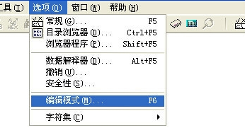 你可以利用选项,进行编辑模式的设置,如设置16进制模式,文本模式等等。