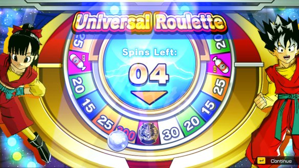 第二种为Universal Roulette,是一种转盘玩法,需要花费30000金币来执行,转盘的次数有五次,能够获得4种不同的物品,包括15-300不等的经验,提升战斗经验获得的物品,神龙奖章,小机器人装备模块[所有敌人造成的伤害-30%]。