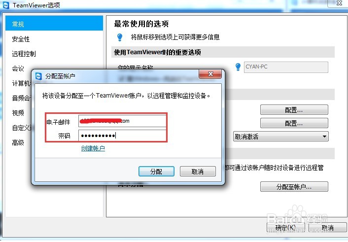 注册完成以后,在下图的分配账户中输入刚刚注册的电子邮件和密码
