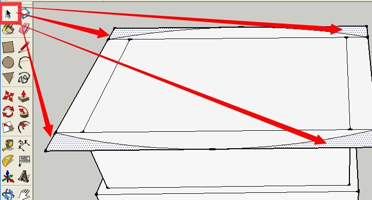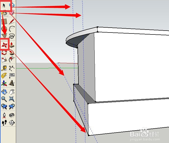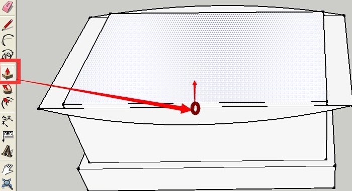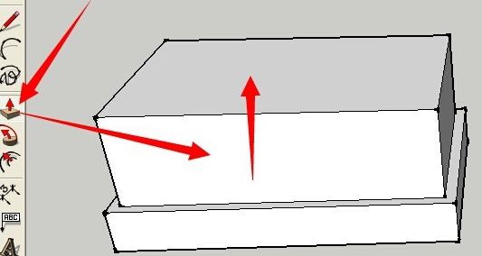 删除后的效果如下 点按推拉工具 再次用推拉工具推拉出一个向上的高度 效果如下所示