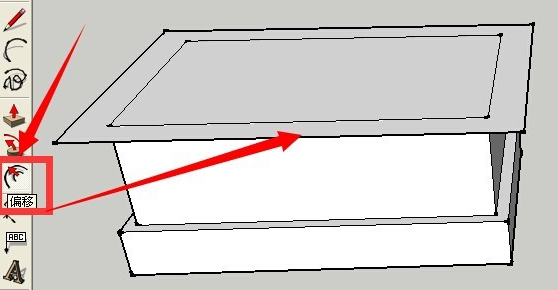 再次选中偏移工具 鼠标点击顶面 并拖动出一个向外的偏移 键盘设置偏移量后点按回车确定