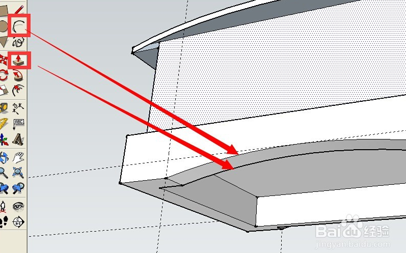 再次用圆弧工具盒推拉工具按前面的操作一遍后面 效果如下