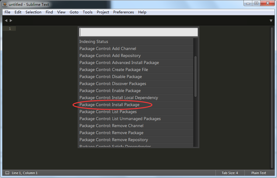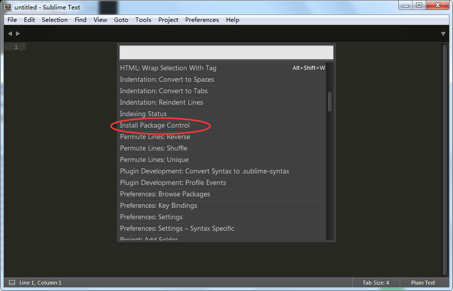 首先:在sublime text3中 Ctrl+Shift+P打开命令面板,找到 Install Pachage Control