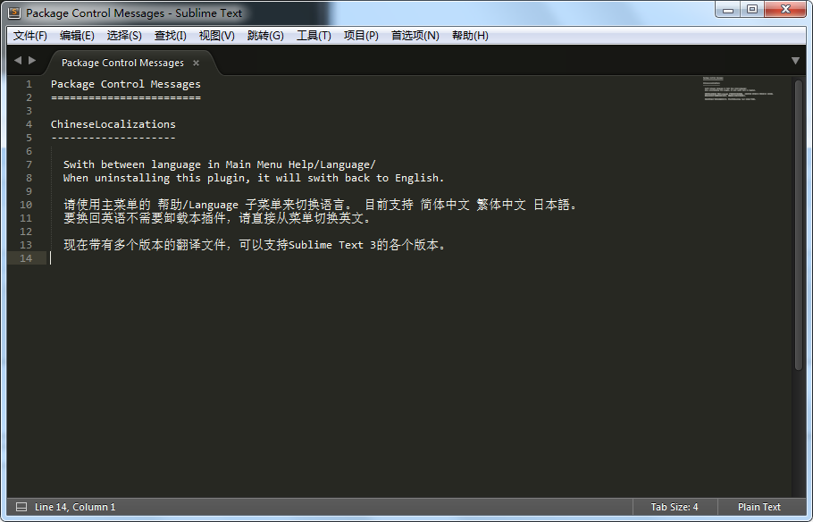 然后:安装一个汉化插件:ChineseLocalizations? 到sublime text3中