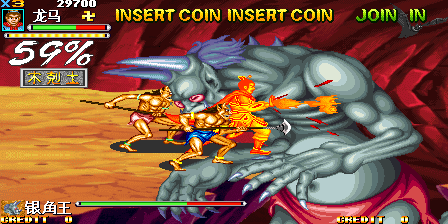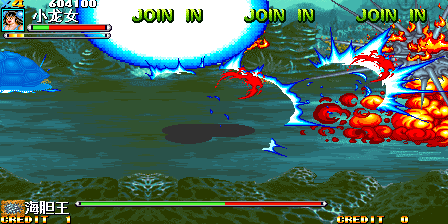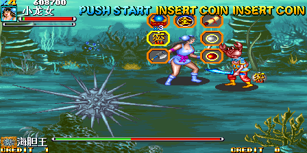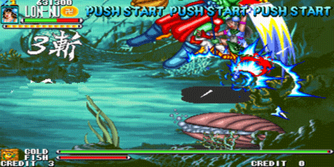 5)金鱼精比较厉害,可以用1-2个密,1个红丸,1个定和角色特有的属性道具,另外有1个符和1把玄冰斧,主要靠升龙了(如有这样还不能搞死金鱼精就说不过去了,因为还要留点道具对付大水怪),↓B打倒它,再敲几下的土方法还是表用了(在知道用升龙之前我最拿手的招数了)