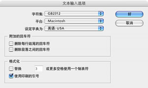 选中所需文本,并选中对话框左下角中的“显示输入选项”。在随后出现的对话框中,设定所需参数后,点“好”。将所需文本置入。(可根据需要选择“自动排文”)。