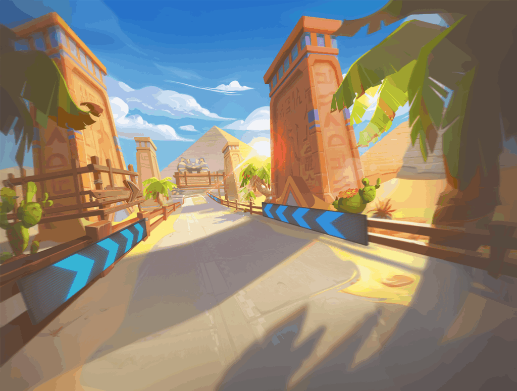 矿山:光线偏暗,赛道中存在活动轨道,路面较为崎岖不平,障碍物及山洞较多,对玩家造成干扰。