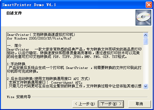 SmartPrinter(Doc Pdf xls to pdf/tiff/bmp/jpg/png)一款大家非常熟悉的经典产品,专为转换文件而研发的虚拟打印机。这款软件以运行稳定、转换速度快和图像质量高而著称,通过虚拟打印技术可以完美的将任意可打印文档转换成 PDF、TIFF、JPEG,BMP、PNG、EMF、GIF、TXT格式。