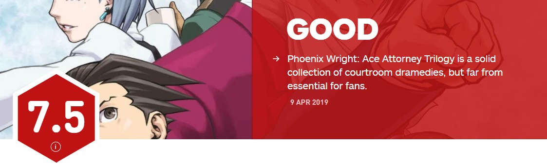 IGN为其打出了7.5分的中等成绩,觉得这波冷饭还不错,这部合辑绝对是超级硬核“法庭剧”向游戏,但是对于“逆转裁判”的粉丝们来说,可以玩,但没必要。