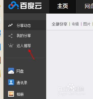直接进入百度网盘,然后点击主页,进入分享的主界面里面