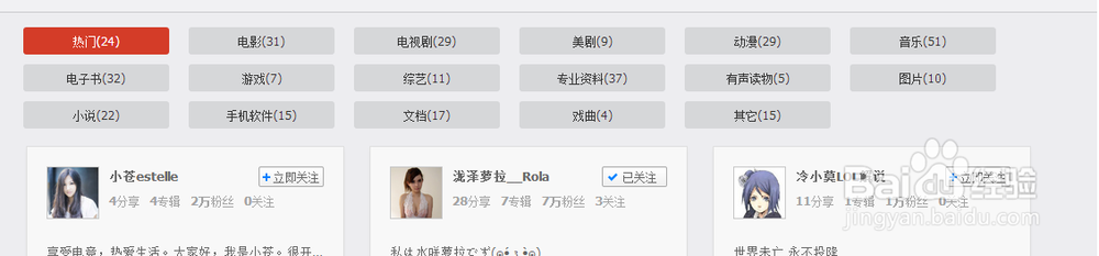 然后点击左侧的达人推荐这个按钮,就会看到官方推荐的一些比较不错的分享资源