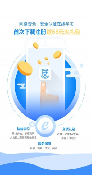 e安在线app,是国内最专业的为网络安全人才服务平台,针对网络安全、信息安全领域学习的要求,提供普适安全水平、技能提升教育平台。精品在线视频安全课程,打破地域限制;在线交互体验,提升技能有针对;小e助教,给你的提升提供支持和辅导;考虑到不同程度和不同领域的受众群体,e安在线根据课程难易度、技能水平高低等进行分类。无论是安全零基础的普通大众,还是正在学习的院校在读学生,亦或是正在安全领域专职的专业人员,都可以在e安在线学习到能帮助自己提升的课程。