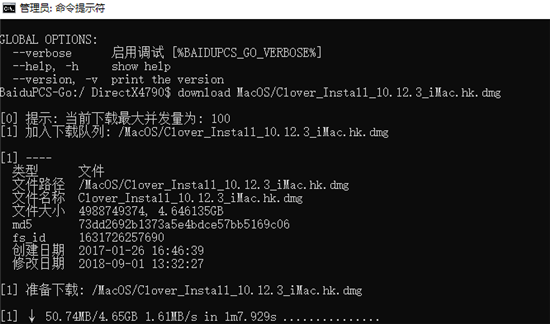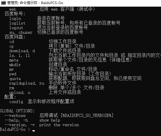 4,以管理员的身份运行cmd,命令行输入BaiduPCS-Go