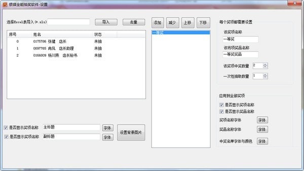 银碟全能抽奖软件是是一款全能抽奖软件,款帮助大家在 年会时抽奖,晚会时抽奖,活动时抽奖,软件支持导入excel名单,支持抽奖界面的文字拖动,实现用户自我布局抽奖界面,美观大方。【软件特点】