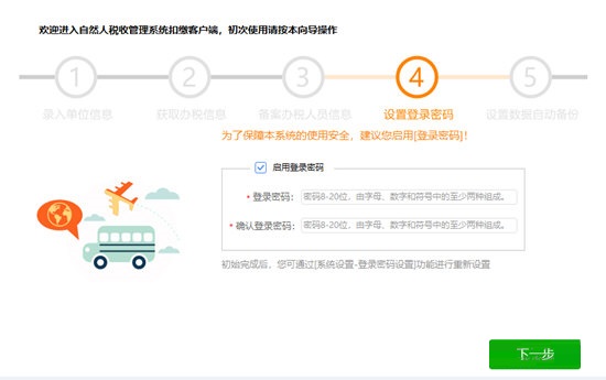 软件安装完成后,点击界面上的【立即体验】按钮(或点击桌面“自然人税收管理系统扣缴客户端”快捷方式),即进入注册流程。注册一共分为五个步骤。