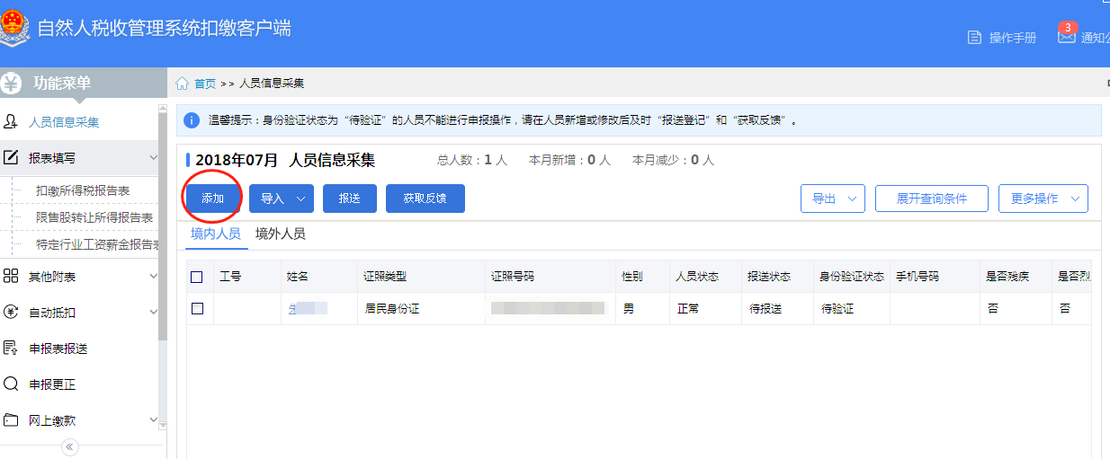 3、添加需要报送的人员信息。
