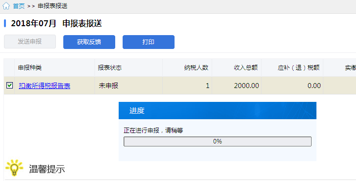 8、发送申报表扣缴税款。