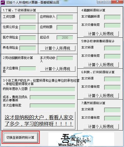 1、下载后解压文件,双击exe启动软件,点击左下角“切换至新版纳税计算”;