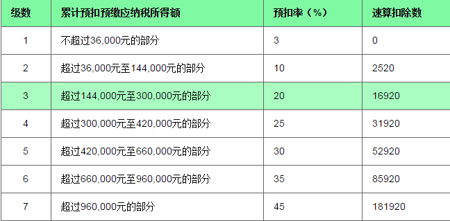 个人所得税预扣率表一(居民个人工资、薪金所得预扣预缴适用)