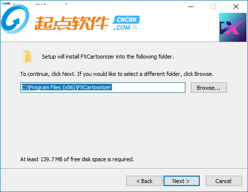 2、设置软件的安装地址C:\Program Files (x86)\FXCartoonizer