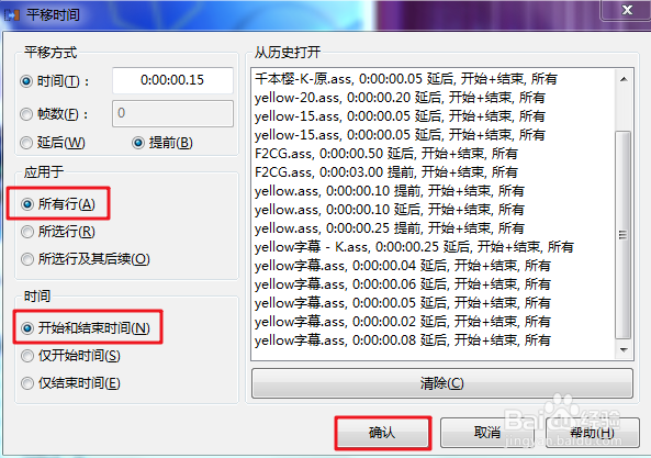 平移时间的话是一般是平移开始和结束时间,不会单一平移开始或者结束时间,如果不知道字幕提前或者延迟的时间,建议使用参数设置成12-15,也就是120ms-150ms,慢慢测试一下,直到感觉合适为止