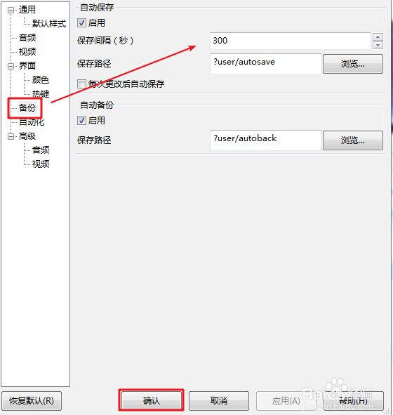 有时候,在右下角时不时会出现,字幕自动保存的路径,aegisub会帮我们没隔一段时间就自动保存当前字幕,如果觉得保存的频率太高了,可以在偏好设置里面修改,单位为秒