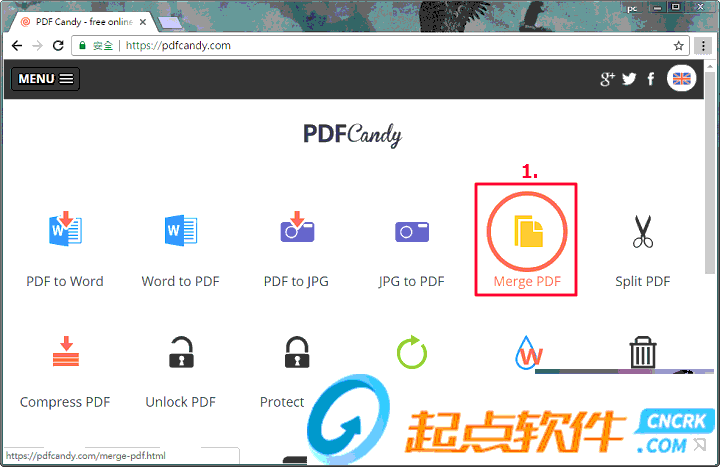 PDF Candy Desktop破解版提供的PDF档案合并功能。Step 1: 如果你需要将两个或多个PDF档案合并成一个PDF档案,那可以点选如下图所示的『Merge PDF』合并PDF功能。