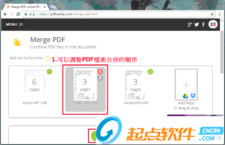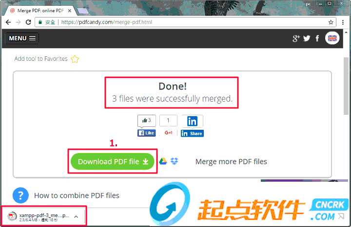 Step 6: 如下图所示可以看到笔者使用PDF Candy提供的PDF档案合并功能完成的例子。