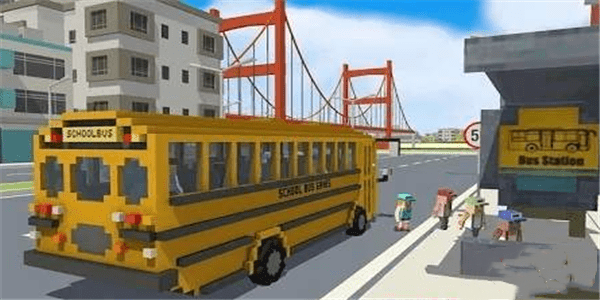1、独特画风通过类MC的像素风格打造人物和校车魔性,并利用低模风格塑造周边环境,在低精度的3D游戏中,让玩家能够从粗糙的画面中找到特有的美感。