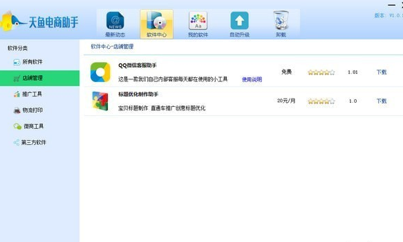 天鱼电商助手是一款电商优化软件,天鱼电商助手内的功能非常的强大,让您对标题还是客户人群都有一定的分析和了解。并且还有很多实用的微商工具,帮助您的店铺可以更好的去推广。
