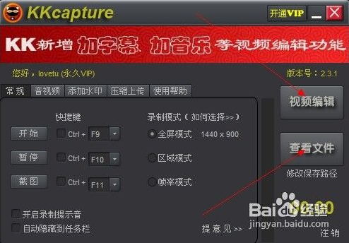 视频录制: KKCapture使用实时采集游戏画面和系统声音,压缩制成视频文件。游戏影响非常小,录像时绝对不卡。录制生成WMV格式,文件体积小,不用压缩就可以直接上传视频网站,也可以用暴风影音等播放器直接观看。操作非常简单,进入游戏后,看到游戏左上角出现黄色帧率数字(FPS)后,按热键F9(默认),数字变成红色,表示正在录制。再按F9停止,文件自动保存在预设目录下。