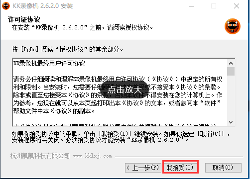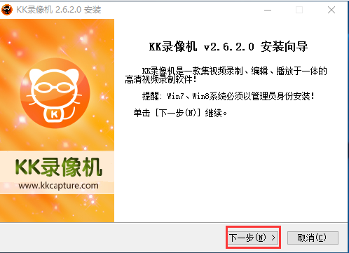 1、打开下载的KK录像机.exe文件,点击下一步;